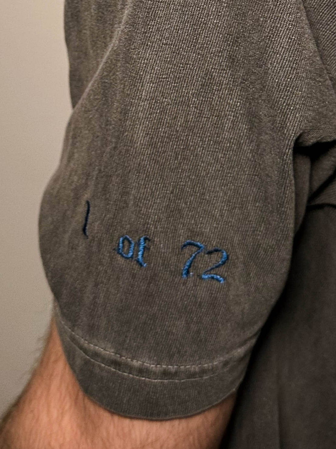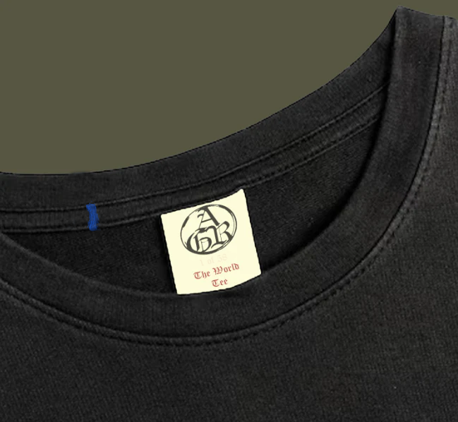 Each piece released by AGR will be embroidered with what number that piece is in the drop. This can be cross-referenced with the unique embroiderey line on the neckline to make sure that the piece is legit by confirming with AGR. All numbers from 2 and beyond are given out at random and do no correlate with purchase timing. The first of each drop will be archived.